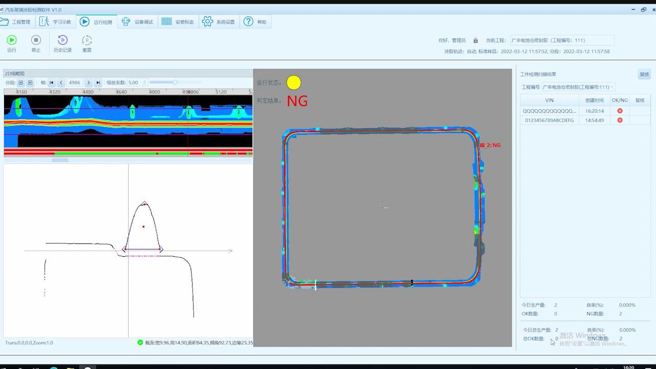 3D涂膠檢測(cè)系統(tǒng)是在2D涂膠檢測(cè)系統(tǒng)的功能上,增加了膠條高度、膠條截面積等的檢測(cè),多適用于更高要求的涂膠品質(zhì)檢測(cè),例如發(fā)動(dòng)機(jī)缸體三角膠檢測(cè)、汽車前后擋風(fēng)玻璃三角膠檢測(cè)、電池殼密封膠檢測(cè)等。